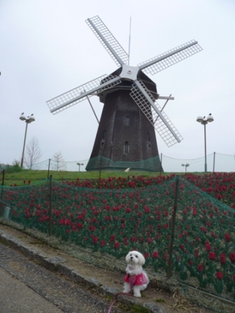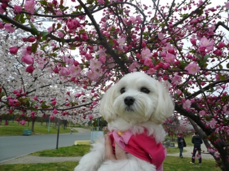 桜とななちゃん とても可愛くてウィンクしているように見えますけど・・・