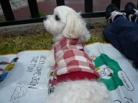 ななは私達と同じ方向を向いて伏せて待ってくれました