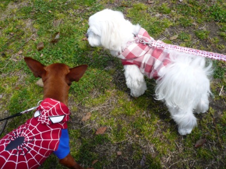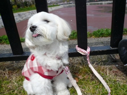 おいちかった~ まんぞくでちゅよ(^.^)途中で会ったトイプーのパピーちゃん