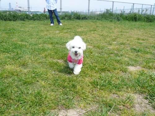 おねぇちゃんと一緒に走る走る・・・ドッグランです