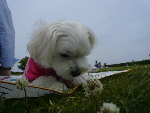 シロツメ草をプチプチは、うちと一緒です~