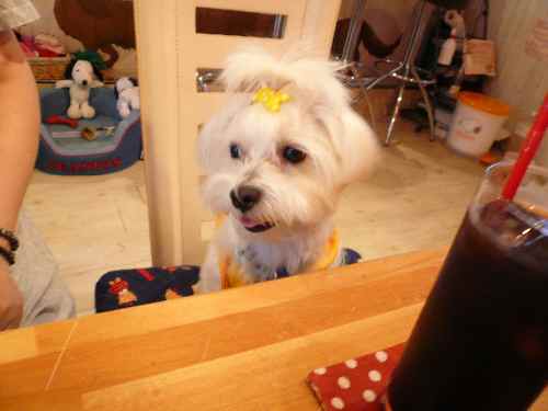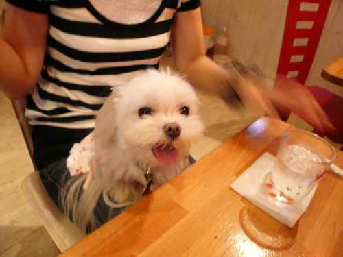 うちも2週間に1度はドッグカフェ通いしてますが、マルチーズちゃんに出会ったことはなくて・・・
