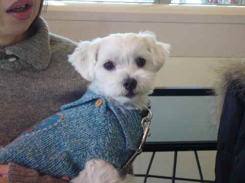 今日はひよこちゃんの付いたニット服で出かけたのですが