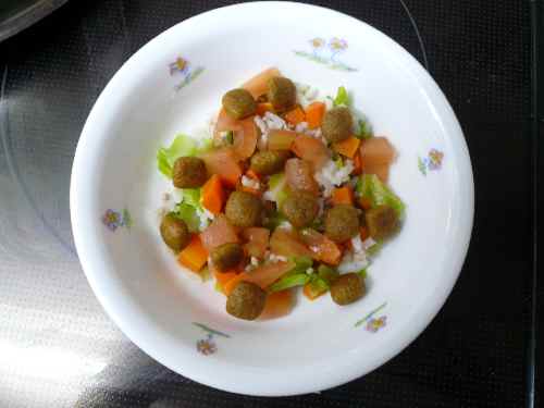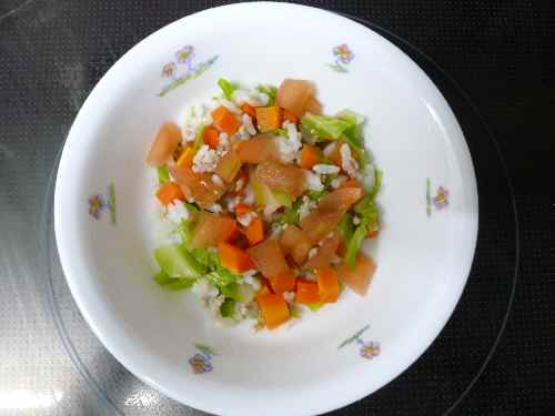 豚ミンチ・ニンジン・キャベツ・トマト・白ご飯