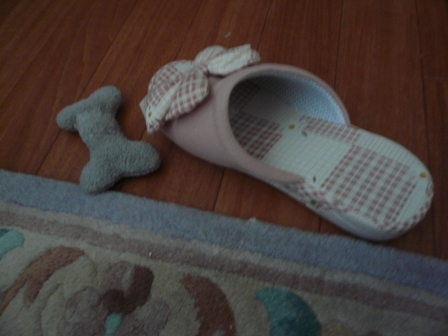 オモチャとスリッパ(片方)にはお留守番してもらって