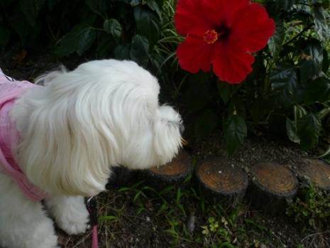 おおきな おはなでちゅねぇハイビスカスっていうんよ