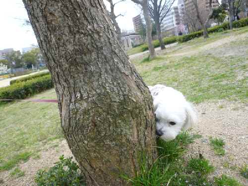 木の横からちょこんと顔を出しているななちゃんの写真めちゃ可愛いですね~いい瞬間が撮れましたね~