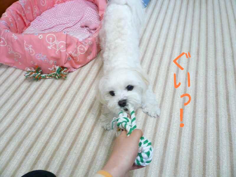 引っ張りっこしてるときのお顔、ミルクもおんなじ顔になります~(='m') ウププ