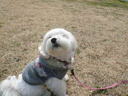 ななちゃん、お姉ちゃんと散歩楽しく歩いてますね♪お口に葉っぱついてますよ~ヾ(- -;)