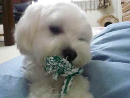 雨の日とかしてますよ。ロープかじかじしてくれればいいですね~ライムはロープかじんないです。パピーの時のがまだきれいです。投げて~と持ってきます