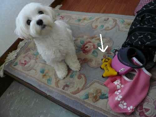 玄関までオモチャをお供に来るななです