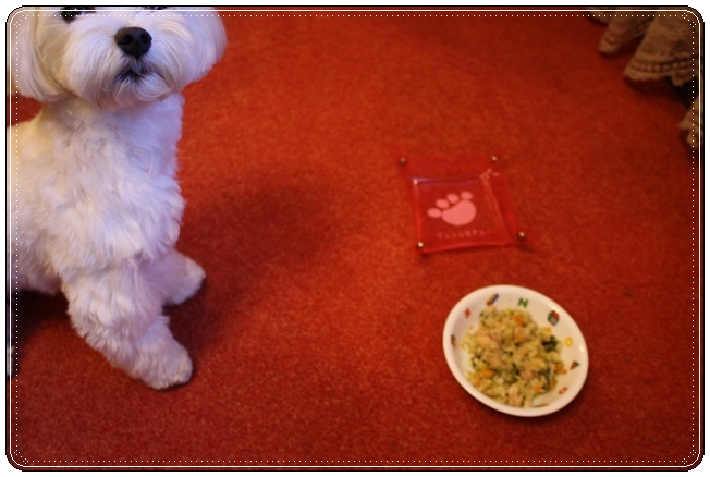お部屋でななが先に朝ごはんです