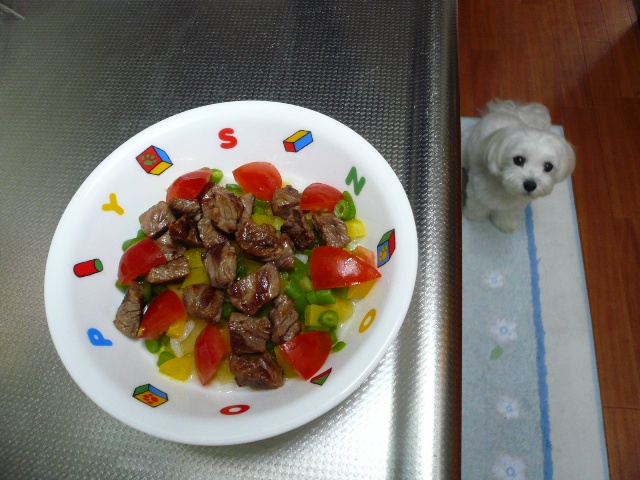 牛肉・パプリカ・ピーマン・三度豆・ミニトマト・お芋入ご飯