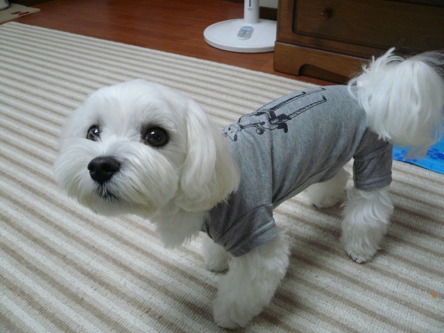 さっそくお洋服着せられた ななです