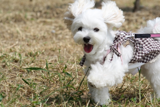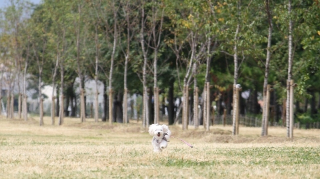 広い芝生で走るなな