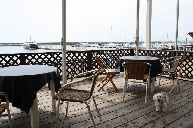 ヨットハーバーにあるレストランのテラス