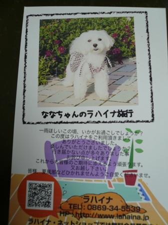 ホテルよりお礼?の葉書だそうです
