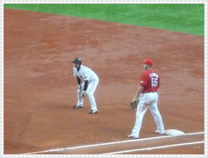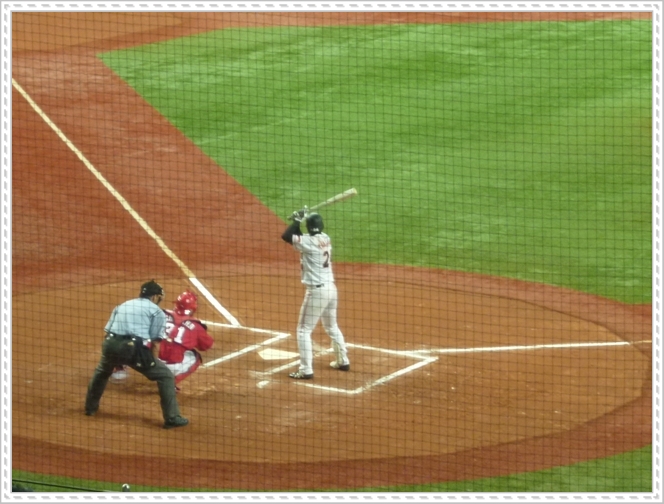 左打者なので一塁側から見るとお顔が見えないのが残念