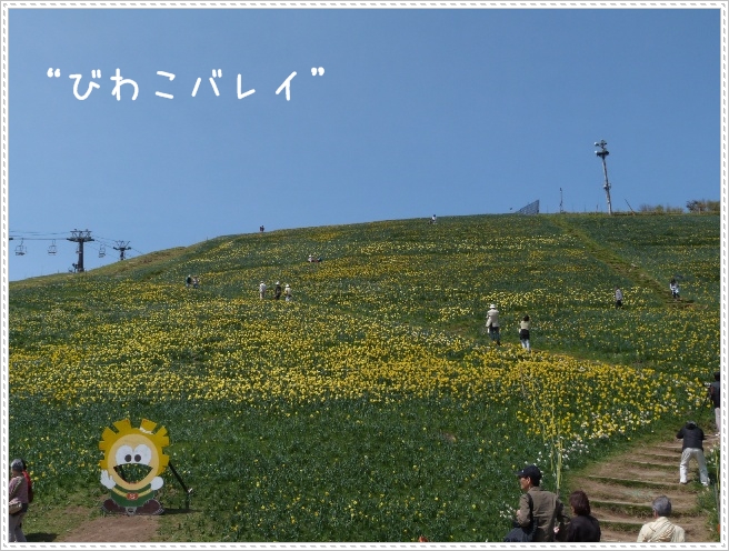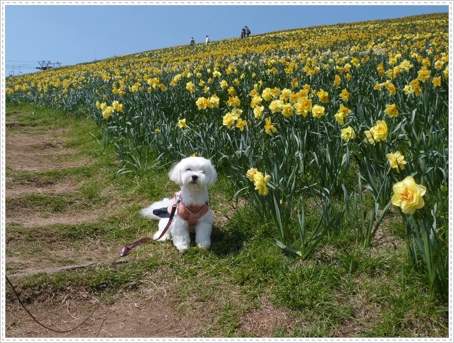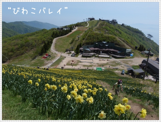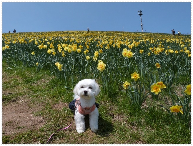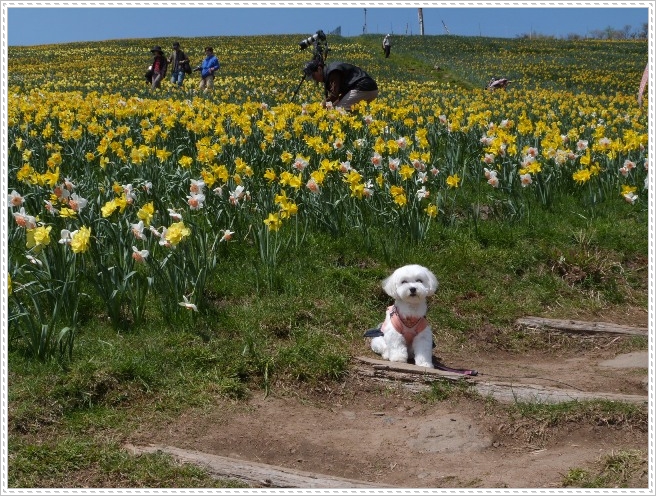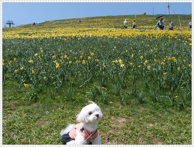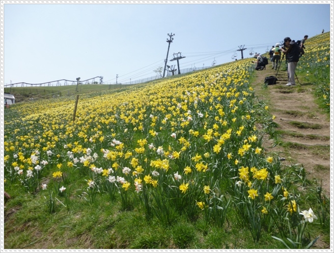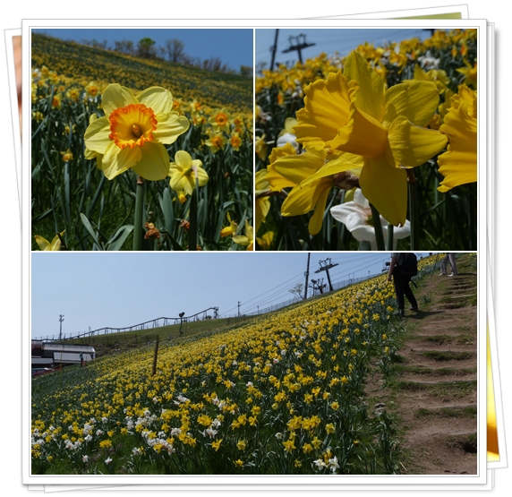 スキー場の急斜面一面にスイセンが満開でした