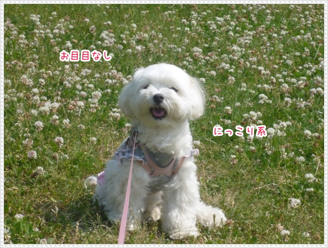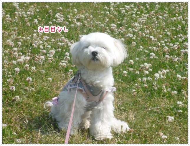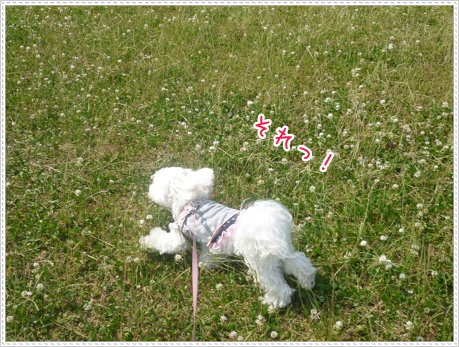 大好きなシロツメクサの上に座って