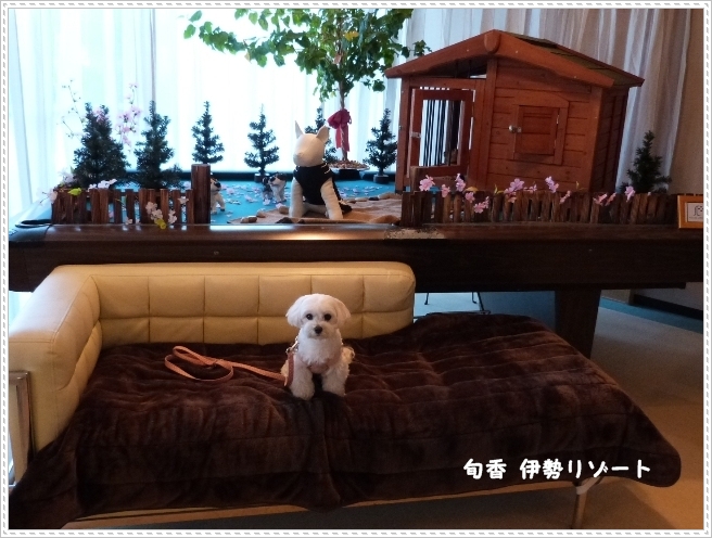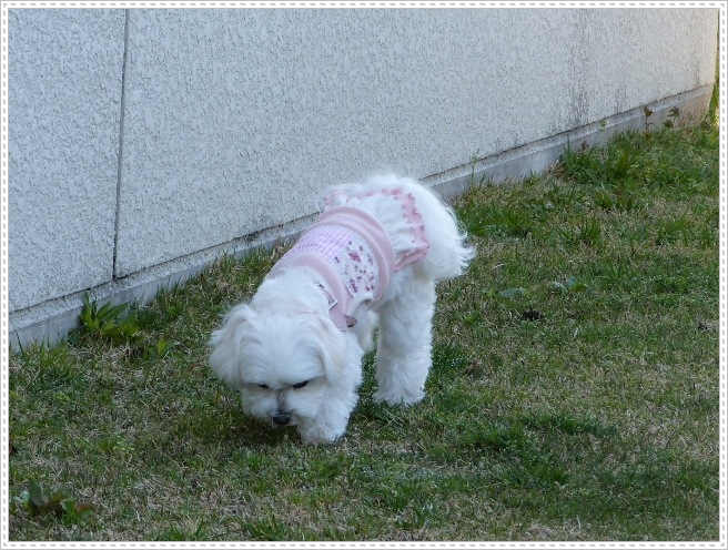 朝食前に お庭(ドッグラン)で少しお散歩です