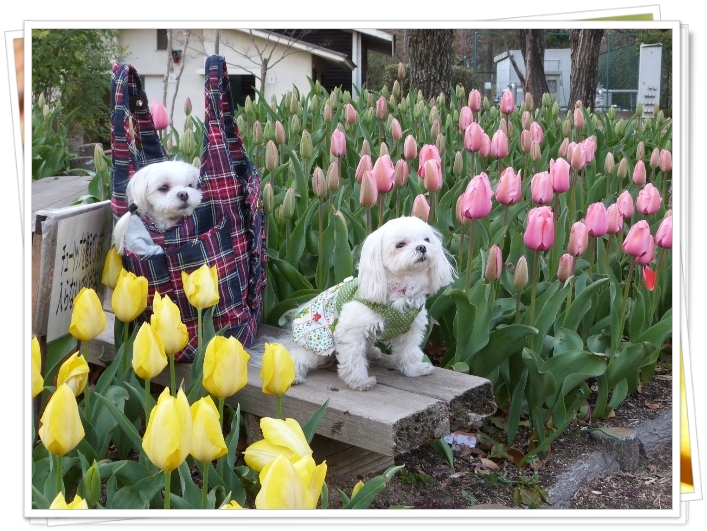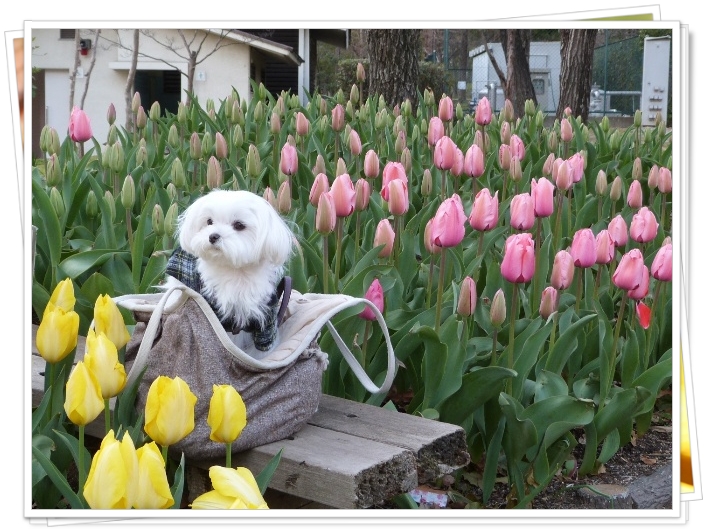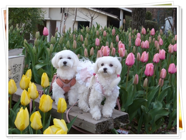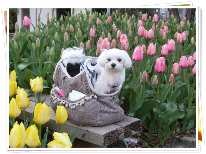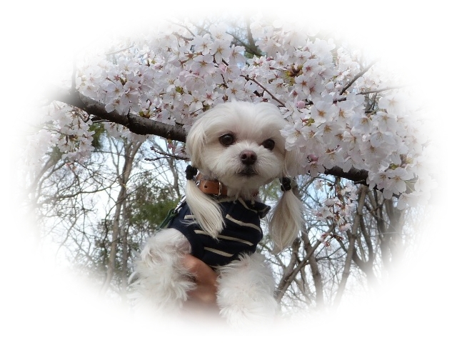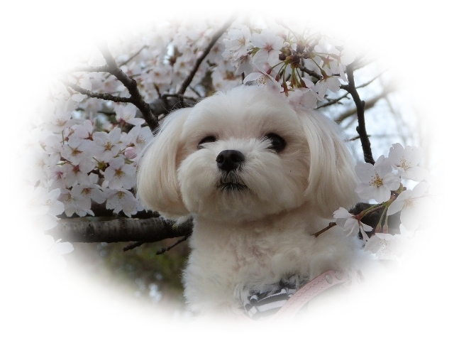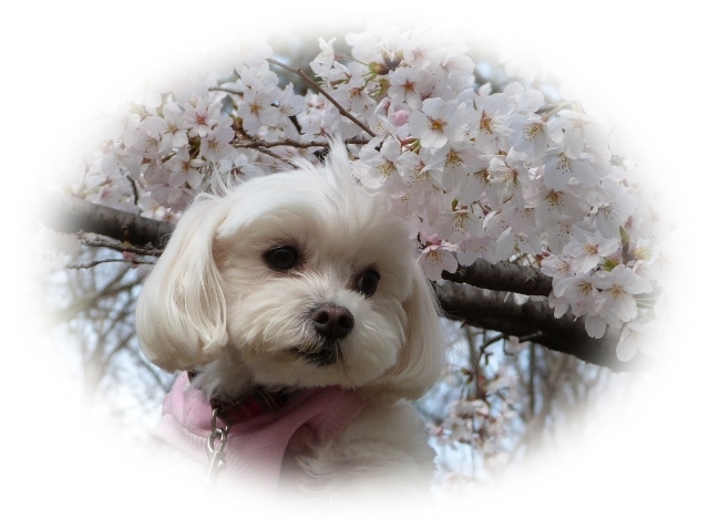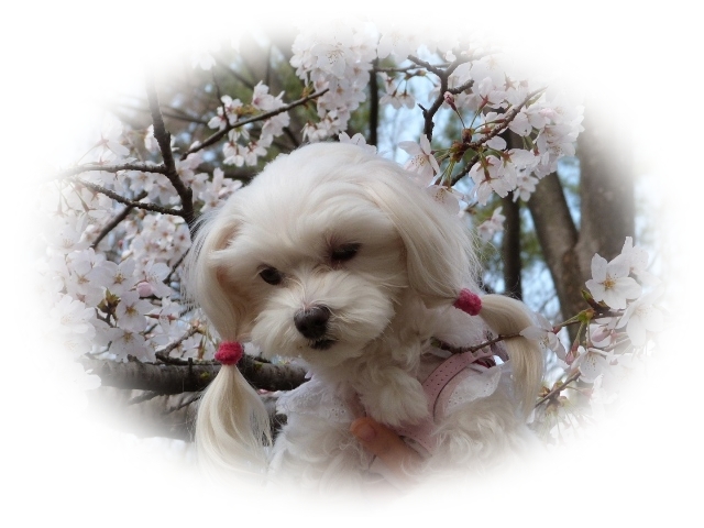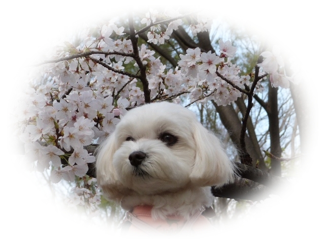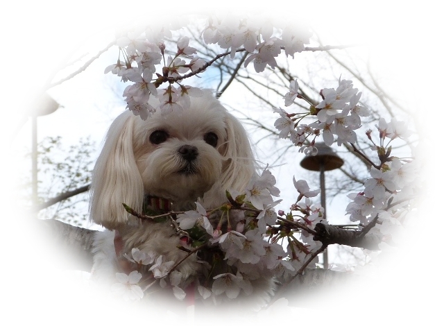 桜とマルチーズ・・・いいねっ♪
