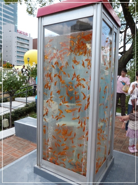 最近見かけない電話ボックスの水槽に大量の金魚(゜ロ゜)ギョェ