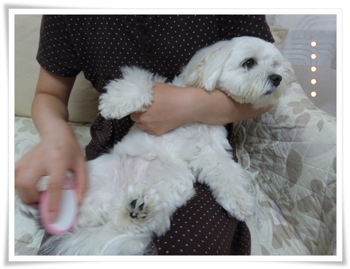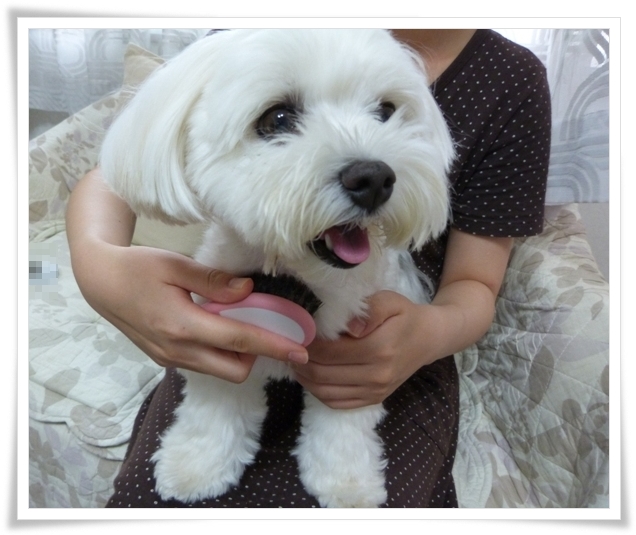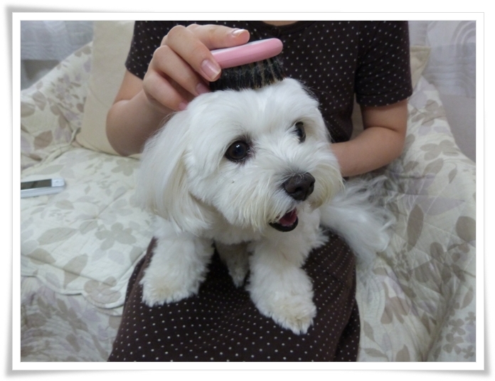 「なな~~モッサモッサやから ブラッシングしよ~」