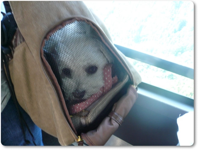 山に登るにはロープーウェイに乗ります(バッグかケージ要)