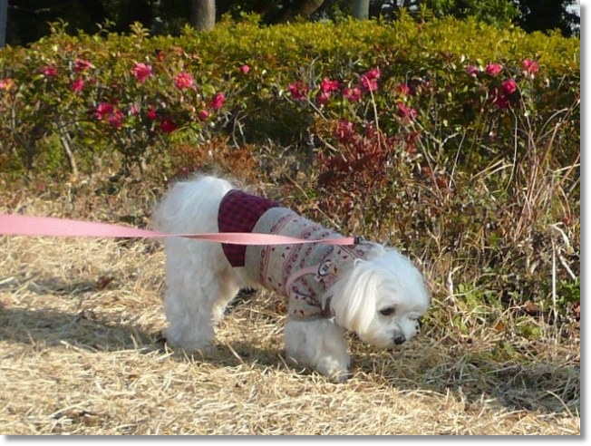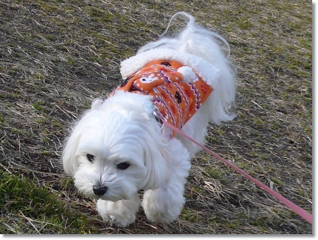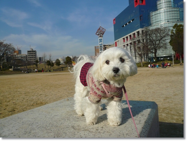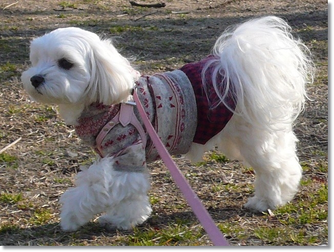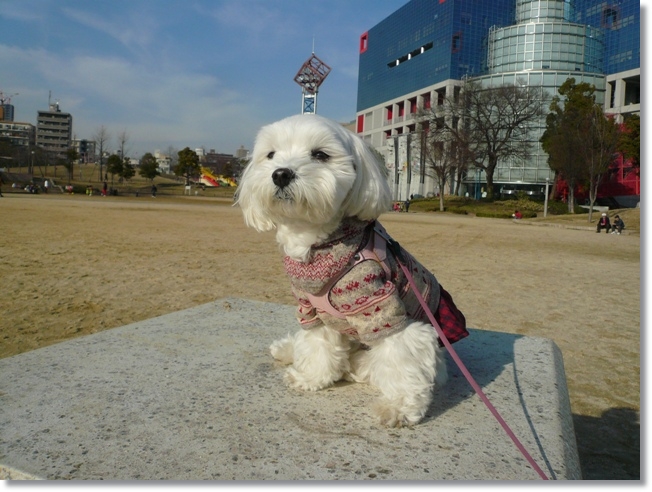 昨日は少し寒かったのでマフラー付きのお洋服です