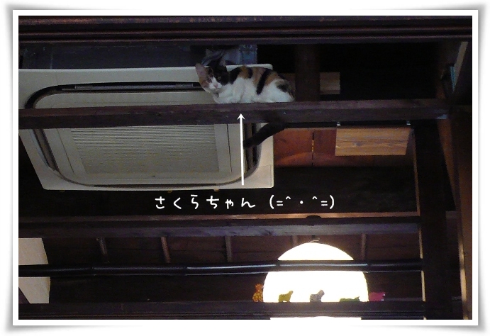 ななに驚いたのか天井の梁に避難しました(^^ゞ