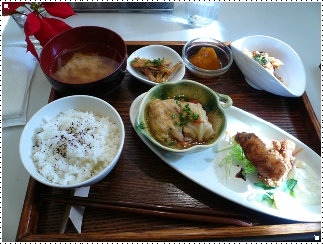 私は日替わりランチ(ロールキャベツ&カキフライetc.)