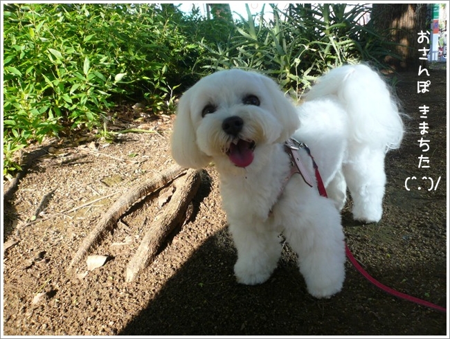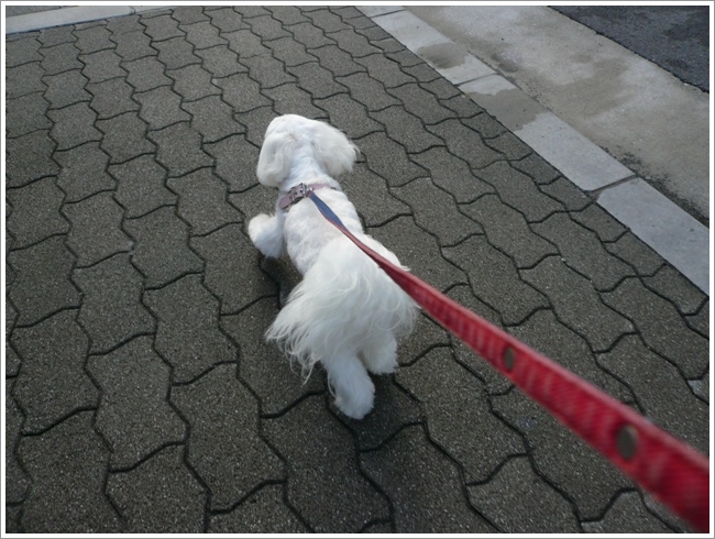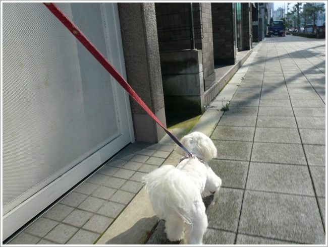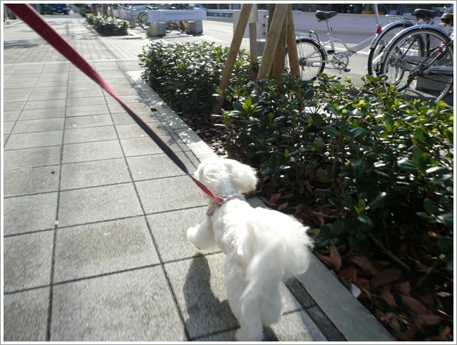 歩道を嬉しそうにテクテク