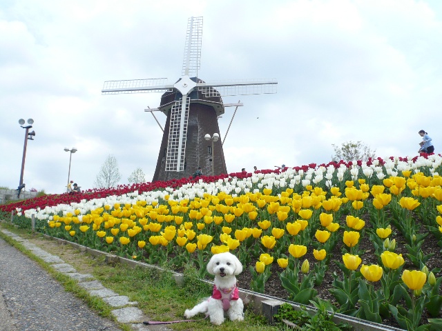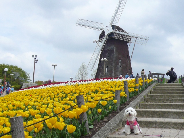風車にはやっぱりチューリップですね