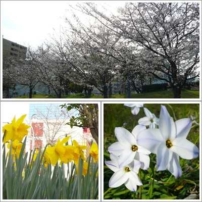 いつもお散歩に行く公園の桜はまだ5分咲きかな