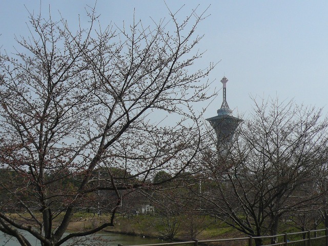 奥に見える 花博の時のパビリオン『いのちの塔』