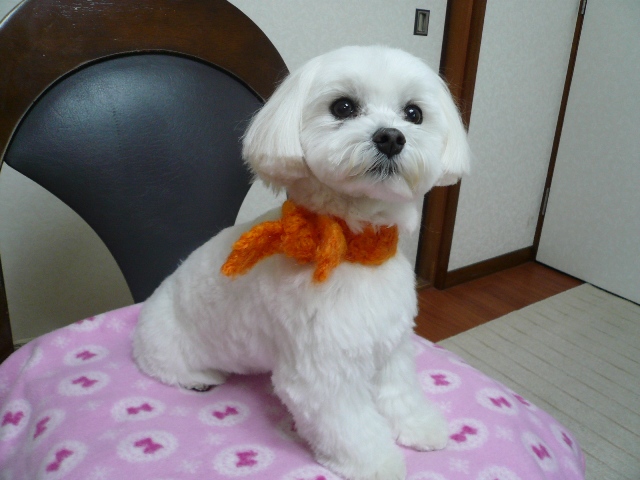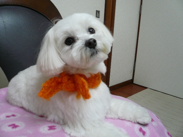 今日はオレンジ色のマフラーです