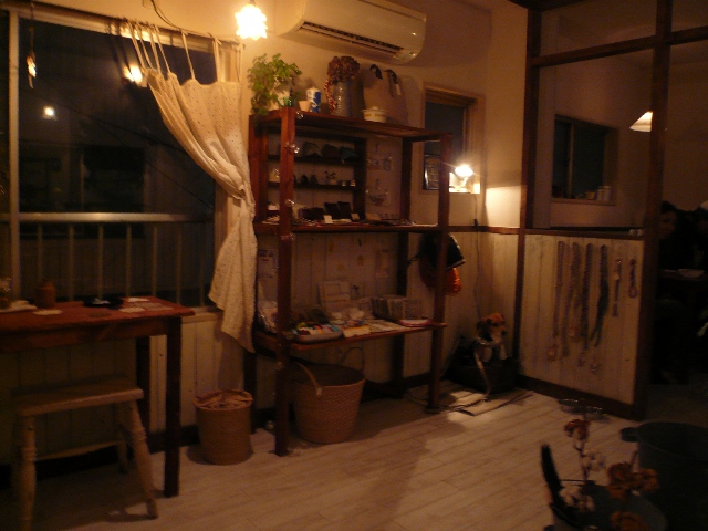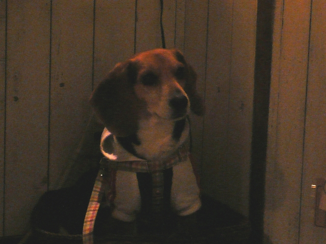 奥に看板犬がいます(ビーグルです)