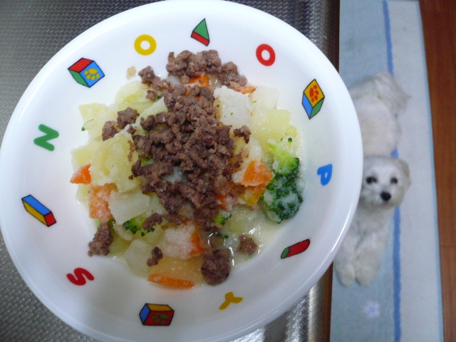 クリーム風におからで煮て 炒めた馬肉をトッピング