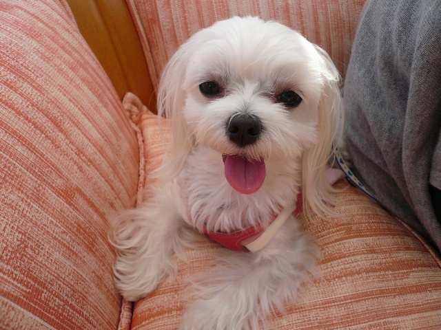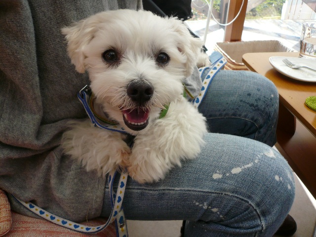しろくんはママのお膝で笑顔~