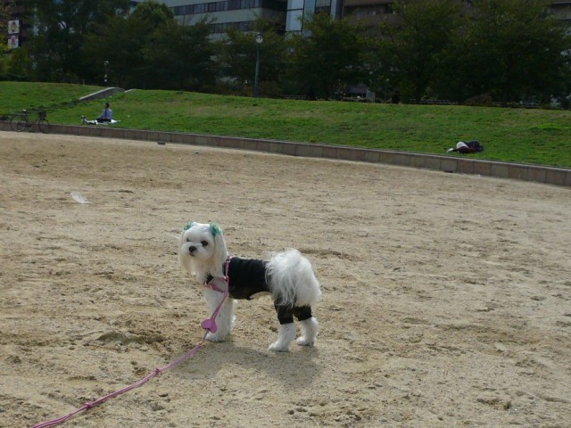 メグくん、初めての公園なのにすごく賢くテクテクしてました