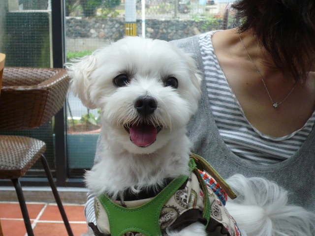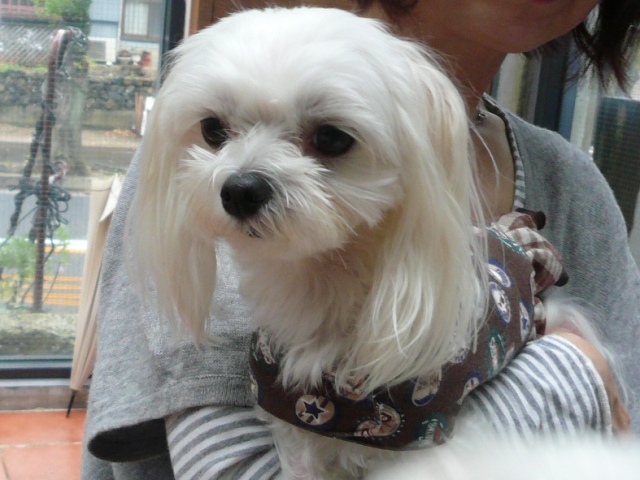 しろくん、小太郎くん ママに抱っこされてごっ機嫌