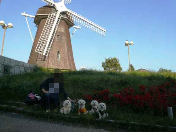 おなじみの風車の前で記念写真