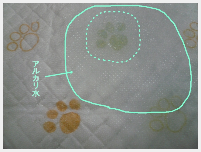 端っこに整水機のアルカリ水をかけてみたら