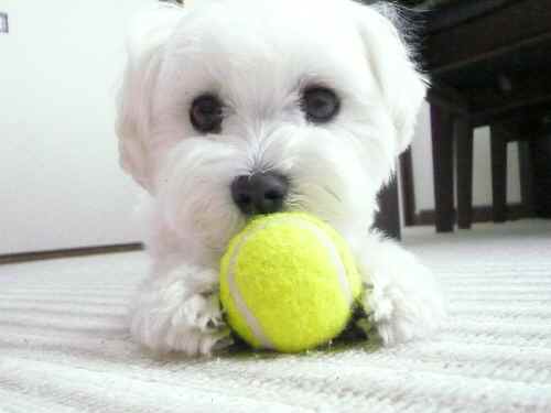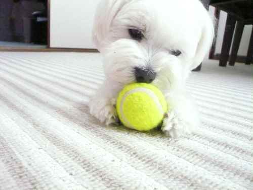 今日はテニスボールをあむあむしてます